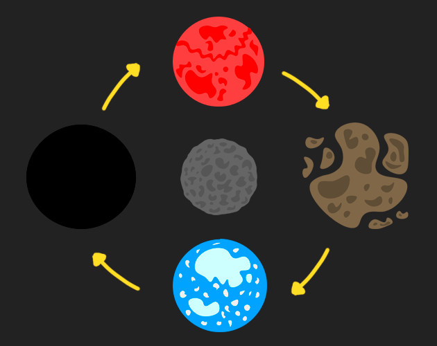 You were sent to an asteroid to mine a rare mineral, to cool it rotates around four planets. When it approaches one of the planets, the environment on the asteroid changes due to the effects of the planets.